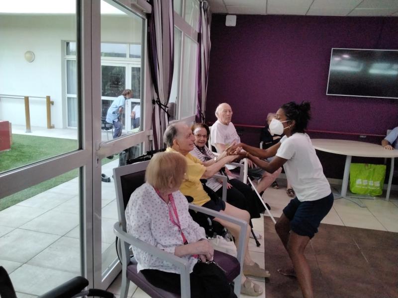 Hier après-midi, reprise de l'atelier de danse thérapie aussi bien à l'unité protégée qu'au secteur ouvert. Dasnari, professeur de danse, est revenue après les congés pour offrir aux résidents un moment de grâce. Les entraînant dans son univers, ces derniers ont été captivés. Les visages étaient radieux, les tensions apaisées et même les familles présentes ont été enchantées de cette démonstration.