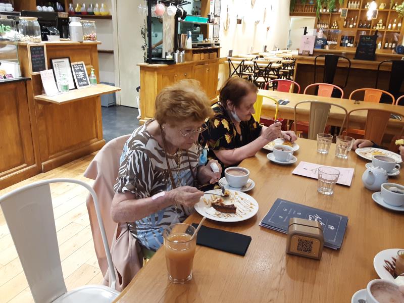 Jeudi après-midi, nous voilà parties pour une sortie aux Terrasses du port. Non pour faire les soldes, mais aller prendre un bon goûter. Notre animatrice nous a emmenées dans un endroit qui nous a fait retomber en enfance "ma première Cantine". La décoration nous a rappelé nos salles de classe, avec des ardoises, un cahier en guise de menu. Mais le plus important a été le moment de la dégustation du goûter sur une grande table comme au réfectoire. Plus personne parlait, comme en témoignent les photos.