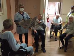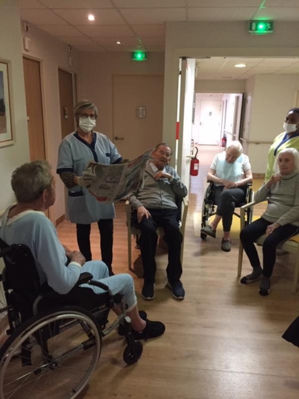 Tous les matins,à chaque étage a lieu la lecture du journal. Corinne et Agnès se partagent les ailes de la résidence et commentent l'actualité. Les résidents attendent avec impatience l'horoscope du jour et le programme télé. Aujourd'hui Corinne est allée du côté Bénédit et a captivé l'attention des résidents.