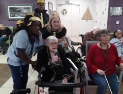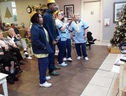 A la résidence Longchamp, la nouvelle année a commencé en chansons. Les AS (Opportune, Christine, Karine, Djeema, Audrey, Clément) et les ASH (Nadia, Bintou, Rolande et Jonathan) ont fait la surprise aux résidents d'organiser un karaoké au cours de l'après-midi. Ayant revêtus leurs habits de fête, les salariés ont entraîné avec eux les résidents dans des airs endiablés. Ainsi de nouveaux talents se sont révélés. Ce fut un moment de convivialité et festif pour accueillir 2020 dans la joie.