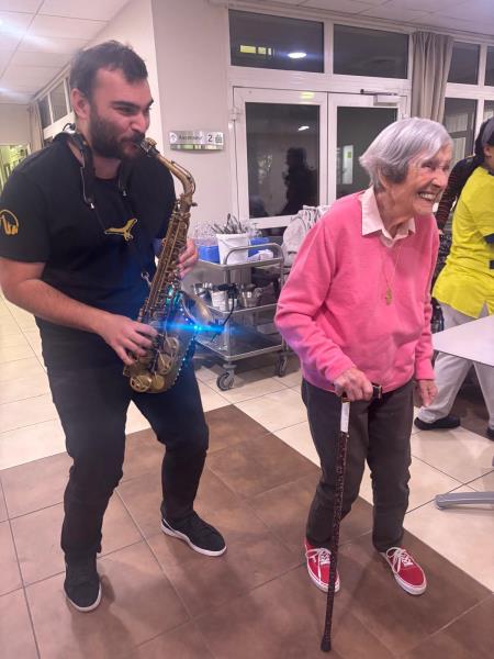 Résidents et équipes se sont réunis pour partager ce moment festif très attendu assuré par notre saxophoniste 🎷