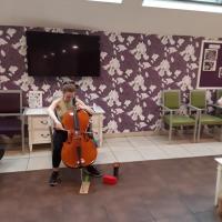 Publiée le 25/10/2021Vendredi, les résidents ont assisté à un récital de violoncelle. Marilou, stagiaire en animation, leur a fait la surprise de venir avec son instrument qu'elle pratique depuis plusieurs années et de jouer pour leur plus grand plaisir des airs de variétés, classiques, le tout sans partition. Tout cela s'est fini [...] Lire la suite