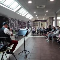 Publiée le 16/03/2021Jeudi dernier, la troupe « Les Airs du temps » sont venus faire une représentation. Au programme des reprises de grands classiques de la chanson française : Claude François, Christophe, Johnny Halliday, Eddy Mitchell et bien d’autres… Les résidents ont chanté, dansé et applaudi. Nos rési [...] Lire la suite