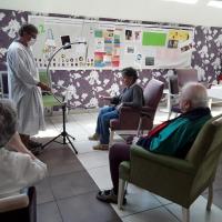 Publiée le 15/05/2020Hier après-midi, les résidents ont pu descendre par groupes dans le grand salon d’animation, pour une activité musicale. Installés en respectant les règles de distance, ces derniers ont chanté et joué à trouver les titres ou les interprètes. Aujourd'hui, un loto était organisé. Friandises et autres douceurs ont été gagnées pour le plus grand plaisir [...] Lire la suite