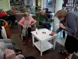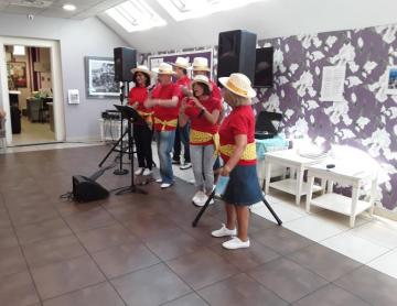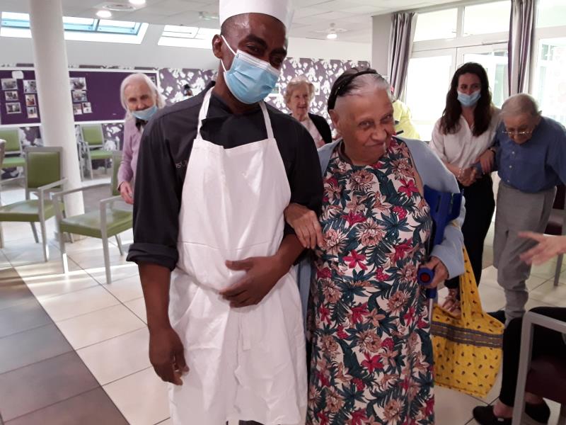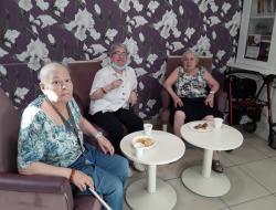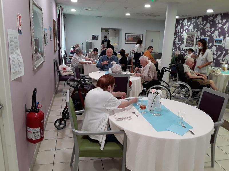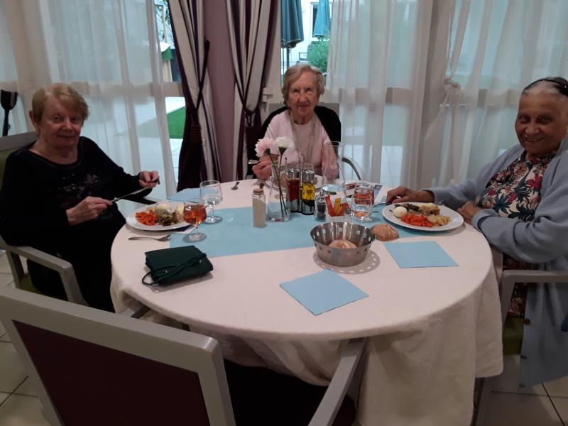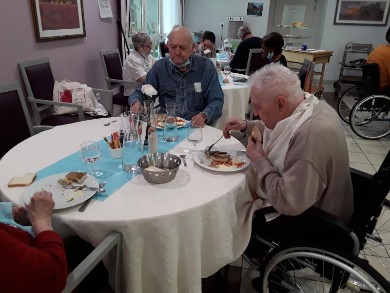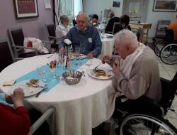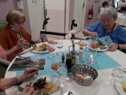 Après l'après-midi en chanson, les résidents se sont désaltérés et restaurés dans un premier temps autour d'un apéritif aux saveurs marseillaise. Ces derniers ont peu dégusté un succulent caviar d'aubergines (fait maison par Frédérique), tapenade, olives et surtout boire la boisson emblématique de la ville: Le Pastis.