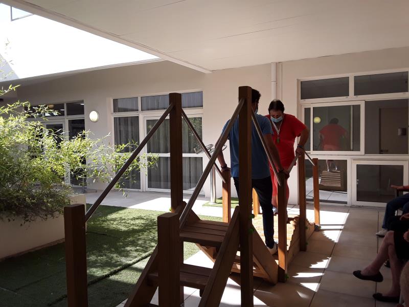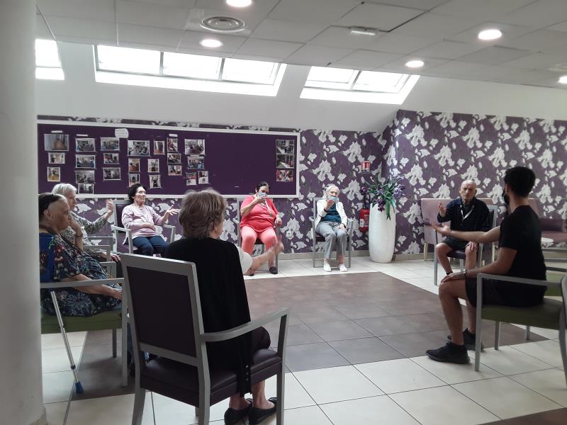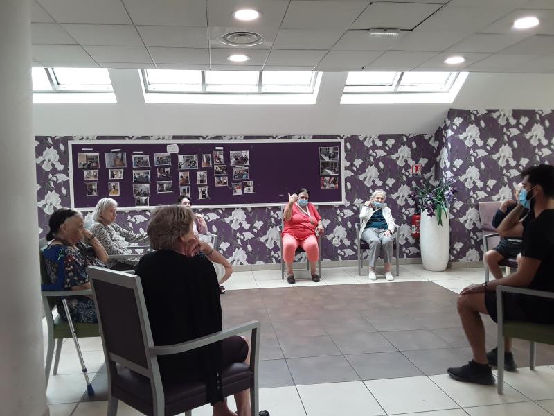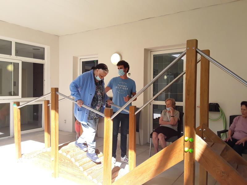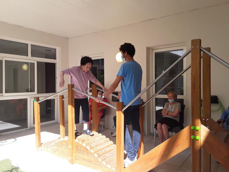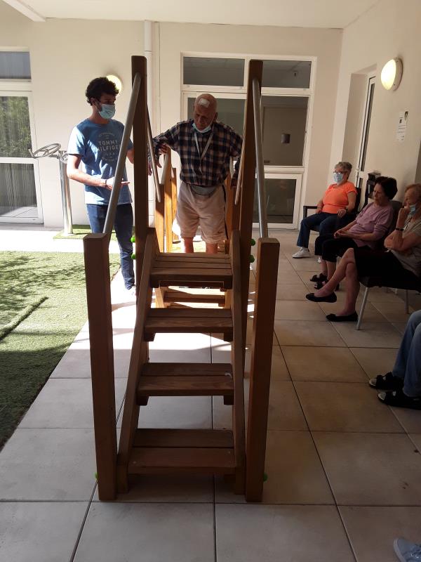 Lundi séance de psychomotricité avec Sébastien avec un atelier de prévention de chutes fait en extérieur avec les agrées du parcours santé profitant du beau temps, suivi de jeux de réflexion. Le mardi a été consacré à de l'entretien physique avec de la gymnastique douce menée par Laurent de l'association Siel Bleu.